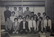 学部時代の学科主任は脳の記憶・学習のしくみを探っていた塚原仲晃先生(最前列右から6人目)。名大の教授となった小田洋一さん(最前列左から5人目)や第一三共の社長となった中山譲治さん(2列目左から5人目)は一緒に勉強会をひらいた仲間だ。(本人:2列目右から5人目)