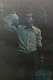 三井研や大沢研の仲間とニテラを採集するために六甲山植物園に出かけた。池の中をくまなく探したがみつからなかった。(本人:前列左から2人目)