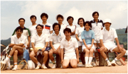 大学院時代は学年も研究室も関係なく、テニスやスキーで学科の仲間とよく遊んだ。柳田敏雄さん(後列左から4人目)は遊びの師匠であり、カニの解剖の師匠でもあった。(本人:後列右から3人目)