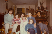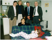ジェラルド・スタッブス博士(左端)のご家族とのクリスマスパーティ。(本人:右端)