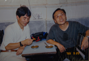 1999年インド・ニューデリーで開催された国際生物物理会議に柳田敏雄さん(左)、宝谷紘一さん(右)と参加した。(本人:撮影)