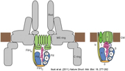図12:べん毛のタンパク質輸送装置(左)とATP合成酵素(右)。Ibuki et al. (2011) Nature Struct. Mol. Biol. より引用