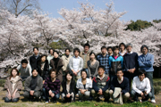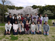 2015年の研究室のお花見(万博記念公園)(本人:2列目左端)