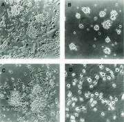 樹状細胞の培養法の論文に掲載した図。ベール状の突起のある細胞が樹状細胞。培養4日目のシャーレから付着性のない細胞を洗い流すと、マクロファージと樹状細胞の集合体が残る(A)。細胞の集合体を取り出し、(B)それを培養すると付着性の細胞と共に突起を持つ細胞が見られる(C)。これをさらに一晩培養して最終的に浮き上がってきた樹状細胞(D)。(Inaba K, Inaba M, Romani N, Aya H, Deguchi M, Ikehara S, Muramatsu S, Steinman RM. 1992, J EXP MED. Vol. 176, 1693–1702, Fig. 1より引用。)