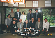毎年行っている、動物学教室出身の教授の集まり「蕪庵会」。京大初の女性教授、柳島静江先生(京大名誉教授・故人:前列左端)、村松先生(前列右端)、川那部浩哉先生(京大名誉教授:前列右から3番目)たちがいる。さまざまな人との縁を大切にしている。(本人:後列中央)。