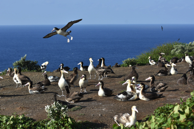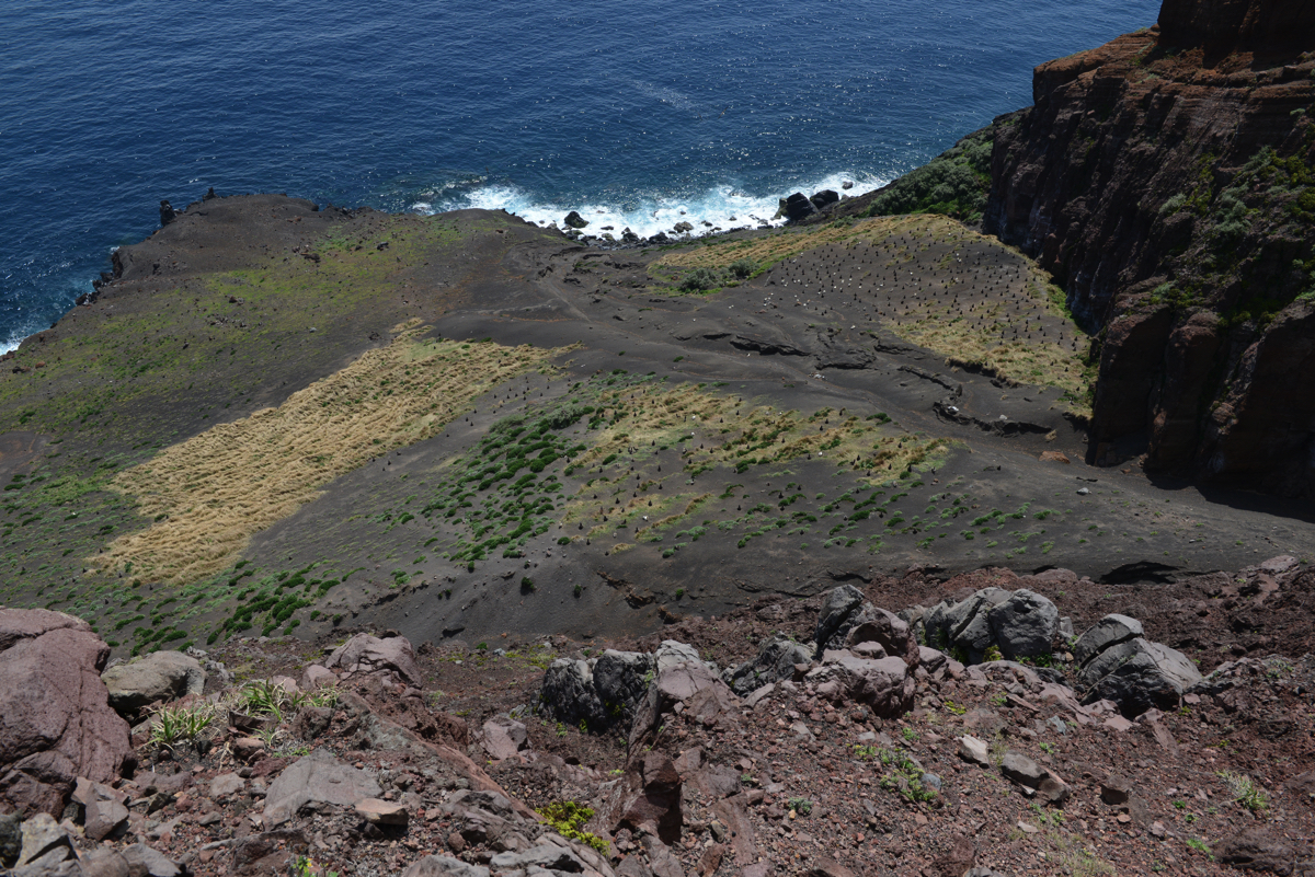 南小島でも生き残ったアホウドリたちは断崖絶壁の岩棚で営巣していた。