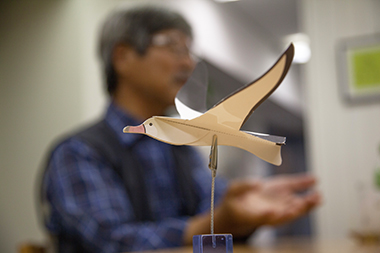 その後、山階鳥類研究所との協力で10体のデコイを制作し、91年に鳥島での野外実験で誘引効果を確認しました。その結果を環境庁に伝えたらアホウドリの保護計画について議論してくれることになりました。92年には41体のデコイを設置し、翌年には50体に増やしました。その時には、求愛音声を再生して本格的に「デコイ作戦」を始めました。音声装置の音量を調節していると、早速、若鳥がデコイの上空を旋回し着陸したんです。しばらくすると数羽の若鳥が飛来し、着陸して求愛ダンスを始めました! 翌年には音声を2種類交互に流すよう改良し、デコイの増設もしました。音声装置の設計・製作は三洋電機が担当してくれました。始動から3年目、ついに1組のつがいが初めて新コロニーで産卵したのです。第一関門突破です。幸先のよいスタートだったのですが、その後、新コロニーで繁殖するつがいが増えない時期が続きます。音声を1分半のくり返しから30分単位に変え、デコイの数を徐々に増やしていくなどの改良を重ね、飛来する個体数が増えたと思うとまた減少するという時期が5年続きました。この間、最初につがいになった1組が毎年、1個ずつ卵を産み続けてくれていました。しかし、もしつがいの片方が死んでしまえばまた振り出しにもどるのです。まさに綱渡り状態、きつかったですね。2002年あたりから飛来する個体がようやく増えてきました。2004年には新たに3組が営巣し、合計4組が産卵、4羽のヒナが無事に巣立ちました。デコイ作戦開始から12年かけてついに新コロニーが確立したのです。その後、新コロニーは急速に拡大していきました。新しいコロニーで最初に産卵したつがいは17年連続して産卵し13羽のヒナを育てましたが、オスが先に亡くなってしまいました。つがいの絆が非常につよい鳥なのです。アホウドリはつがいの片方が亡くなるとすぐには新しい相手とつがいになりませんが、幸いこのメスは1年で再婚しました。個体標識をして長期間、継続調査してきた結果、このようなアホウドリの繁殖生態も徐々にわかってきました。繁殖開始年齢は平均7歳と遅いのですが、僕が確認した最高齢は38歳と非常に長寿で、典型的な少産少死です。巣立ち後の死亡率はほぼ一定で、毎年4.5%ほどです。繁殖年齢未満の個体数と繁殖つがいの個体数を足し、成鳥の繁殖参加率約80%を組み込むことで、鳥島のアホウドリ集団全体の個体数変化をかなり正確に推定できるようになりました。