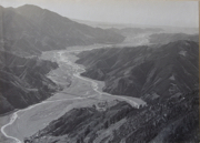 生まれ故郷(最前の小集落)。家の近くに安倍川の本流と支流が合流する広い河川敷があった。