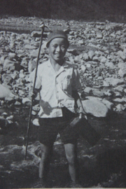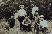 高校3年生の夏、生物部で出かけた山梨県櫛形山でのチョウ採集合宿(その一つの班)。顧問の中村浩三先生と。(本人:前列左端)