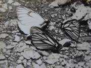 高地にすむミヤマシロチョウ(地表で吸水中)。生物部で採集・観察したチョウの記録は静岡昆虫同好会の会報『駿河の昆虫』に投稿された。この会報は過去の環境を知る資料とし今も活用されているそうだ。