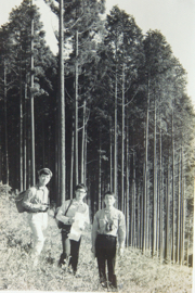 大学1、2年生のころはよく仲間と自然観察に出かけた。比叡山から京都の大原へと抜ける道での記念写真。(本人:左端)