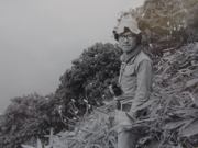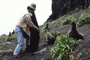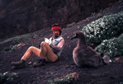 初上陸の時、アホウドリのヒナと(1977年3月)。