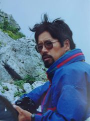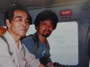 尖閣諸島南小島での上陸調査にて、朝日新聞社の米山正寛記者と(1992年4月/森下東樹 撮影)。