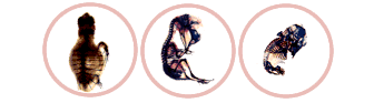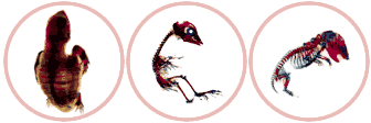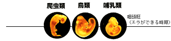 カメの場合はどうだろう。カメの肋骨は、その象徴ともいえる背中の甲羅である。孵化するまでは普通の肋骨のように見える(ただし真皮の中にまでしっかりと埋まってはいるが)。その後、真皮中にできてくる別の骨と一体になって、扁平な肋骨となり、さらに前後に隣り合うもの同士がしっかりとかみ合う構造を作り、全体が一枚の板になるのである。この骨でできた板の上をさらに表皮の変化した硬い板が覆い、甲羅ができあがる。